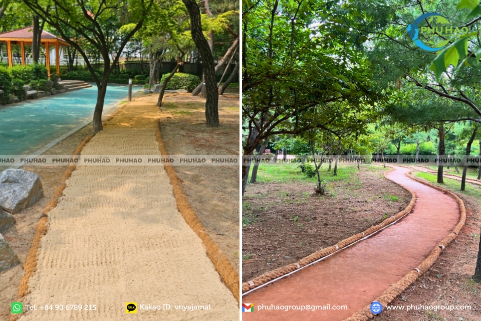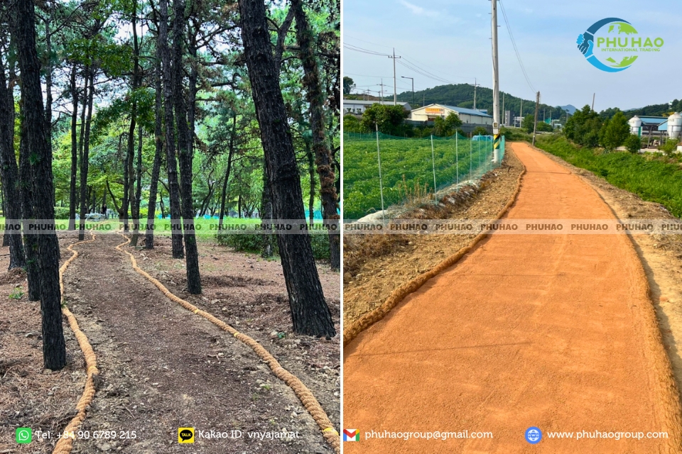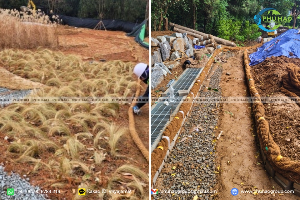 조경 작업에서 코이어로프는 기둥에 감거나, 통로의 가장자리, 부드러운 울타리를 만들거나, 생태 관광 지역이나 홈스테이의 장식 난간으로 사용하여 소박하고 자연과 가까운 미적 가치를 제공할 수 있습니다. 또한, 미끄럼 방지 및 탄력성 덕분에 이 밧줄은 구조를 단단히 유지하고, 재료를 안정시키며, 건설 작업과 식물 모두의 안전도를 높여줍니다.